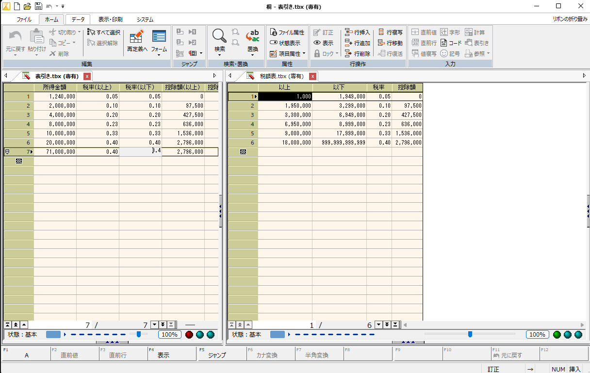 例示のように所得金額を入力して行くとあらかじめ別の表ファイルに定義してある控除額のデータを読み込んでくれる。