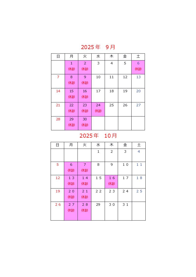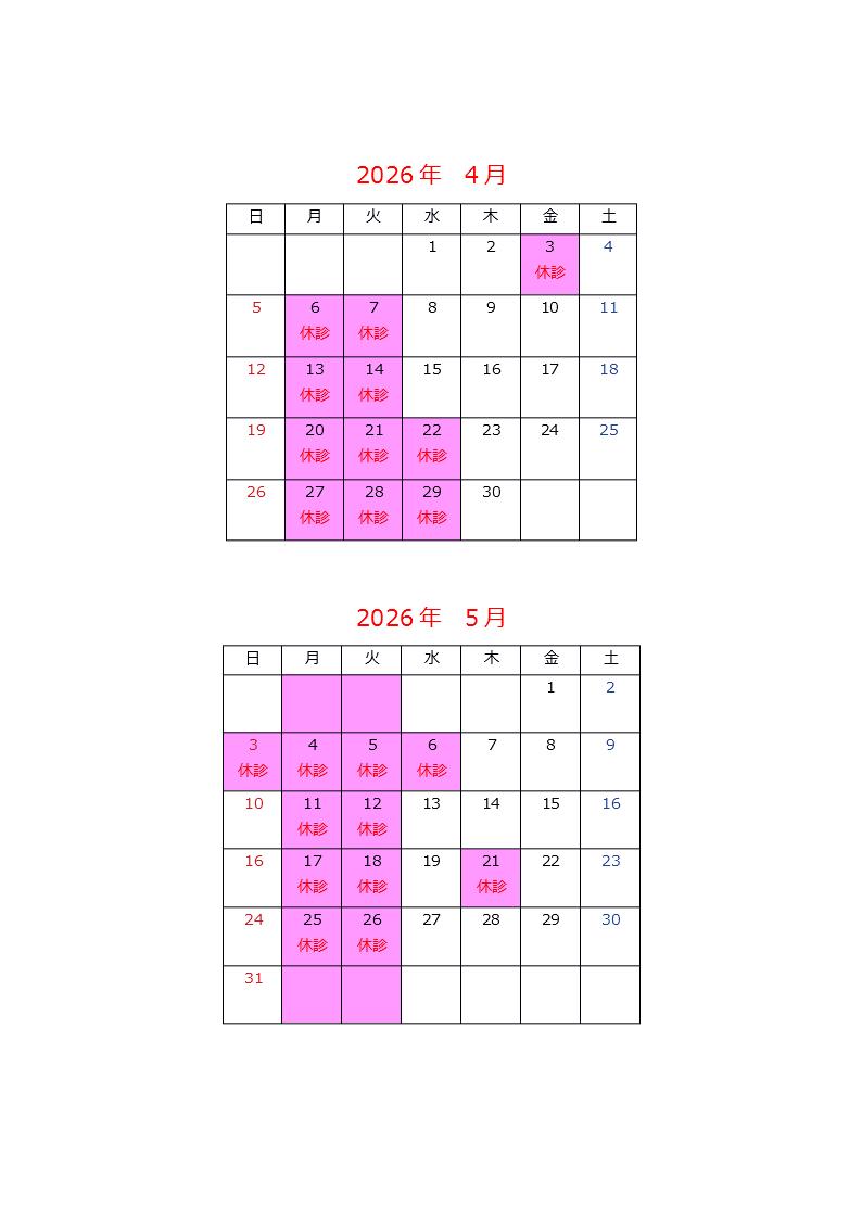 予告なく休診日が変更になる場合があります。ご了承ください。