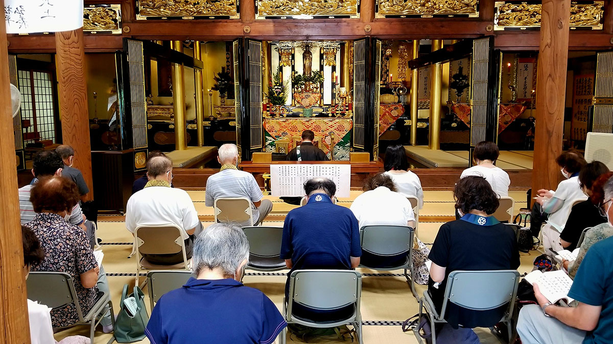 新盆のお勤めと正信偈のお勤めをします | 嫁がれた方も里帰りしてお母様とお参り |