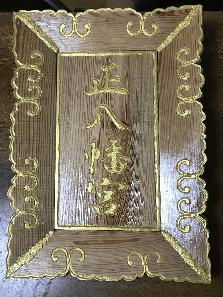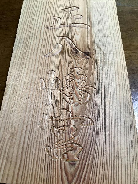 C 一文字ずつ輪郭を彫り込んでいき、文字の中央が盛り上がるようにします。