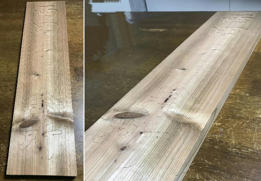 @ まず文字の輪郭を彫刻刀で写します。