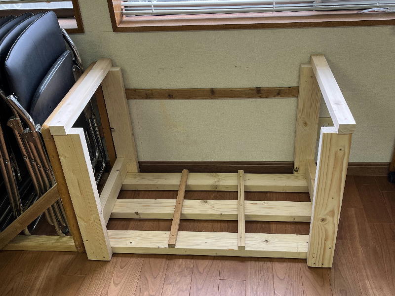 | 卓球台の天板の残りで製作した棚パート2(集会所用)です。 |