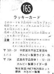 もう一発ライダーチョップのお見舞いだ。あっ 危ない。ジャガーマンはすばしっこい相手だぞ。ライダー、頑張れ!それいけ ライダーキック!今度はヘッドクラッシャーでとどめを刺せ!そこだ!やったぞ!!アニマルパック作戦をつぶせ。 |