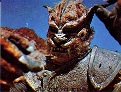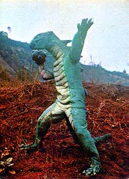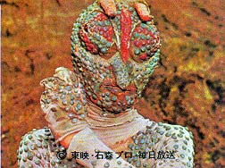 何でも溶かしてしまう赤い毒液を口から吹きかける。鋭い爪。15mものびる舌は、高圧電流のムチとなる。 |