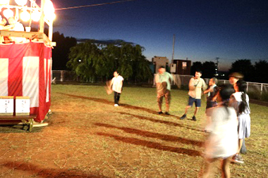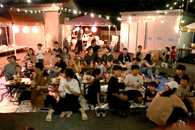 青年会主催で実施。帰省客も交えての夏祭りに町内会も応援して賑やかに実施しました。「おーだれ?久しぶりだのぉ~帰ってきたんかい!」と、帰省した人も一緒に賑やかにビンゴや縁日を楽しみました。イルミネーションが映える頃には、ビールの力も借りて賑やかさに拍車をかけ、纏まりのある町内がセンター前で大きな渦になったことは言うまでもありません。この祭りを通して人との繋がりが強くなっていくと感じました。