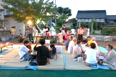 青年会主催で町内中に呼びかけ納涼会を実施しました。焼きそば・焼肉・フランクなど美味しいものいっぱい!飲み物は飲み放題で、子どもたちにはスイカ割りや手持ち花火があり、夜の縁日気分でひと夜を楽しみました。割ったスイカは美味しくいただき、「ここに来なけりゃいろんな話はできないね」と、幼児から高齢者までが、あっという間の3時間を過ごしました。