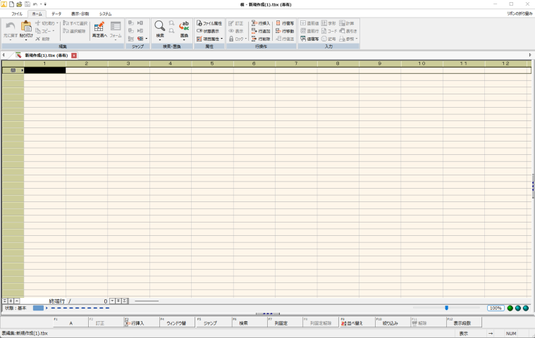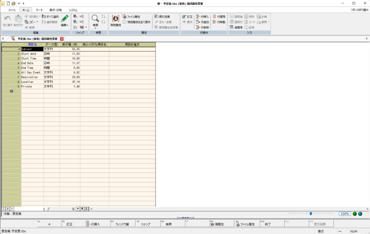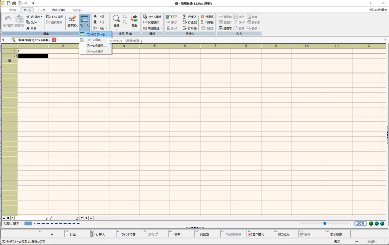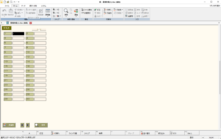 白紙の表を開くで作成すると、入力画面が表示されます。表の定義はなにもしてません。