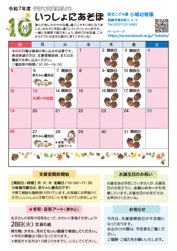 小鳩幼稚園での子育てサポート事業をご案内いたします。