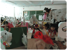これは、実はおばけ屋敷なのです。子どもたちが自分でおばけを考えて作りました。