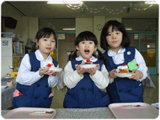 クリスマス会の様子をお伝えします。 今日は楽しいクリスマス会。 みんなで歌をうたったり、手遊びをしたりしてお祝いしました。 でもなんといってもメインはサンタさんの登場です。 「わー!きゃ~!」と歓声が上がり、大変な盛り上りでした。 ちゃんと全員のプレゼントを持ってきてくれたサンタさん。 みんなで「サンタさん!ありがとう!」とお礼を言いました。 お部屋では、みんなでクリスマスケーキ作りをしました。 みんなで相談しながら素敵なケーキができあがり。 本当に楽しい一日となりました。