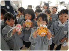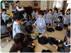 初めてのバス、初めての給食。お兄さん、お姉さんからプレゼントももらいました。