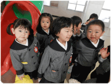 新しい制服の新入児も少しずつ慣れ、元気に遊んでいます。