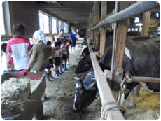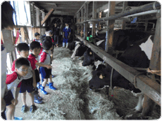 初めて見る乳牛の大きさに、少し驚いた様子の子ども達。