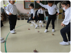 コツをつかむときれいに回せるようになり「まわった」「きれいだね」と大喜びでした。