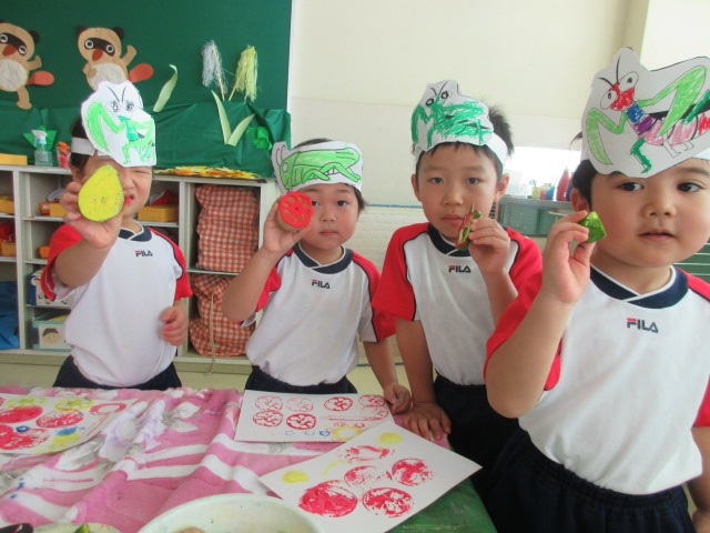 自分の手やトイレットペーパーの芯を使ってきれいな花火ができたよ!わーい、おもしろいな。