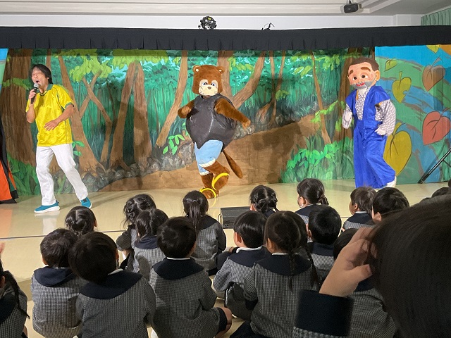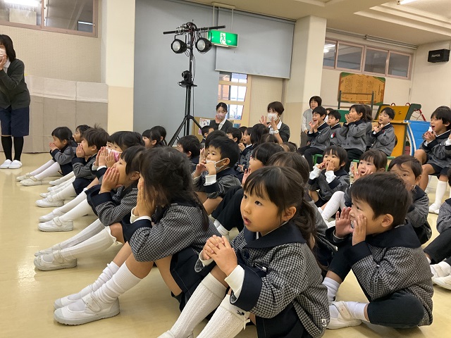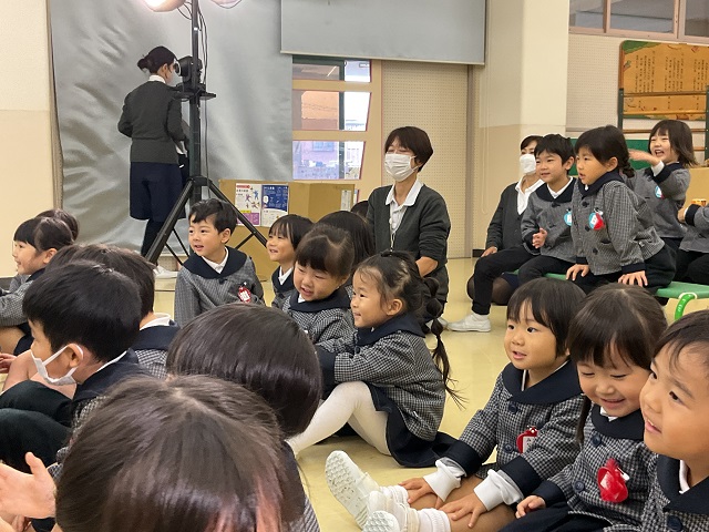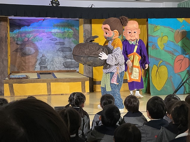 七五三のお祝いで劇団バクさんによる“ぶんぶく茶がま”の人形劇を観ました。子ども達はダイナミックな劇に大喜びでした。